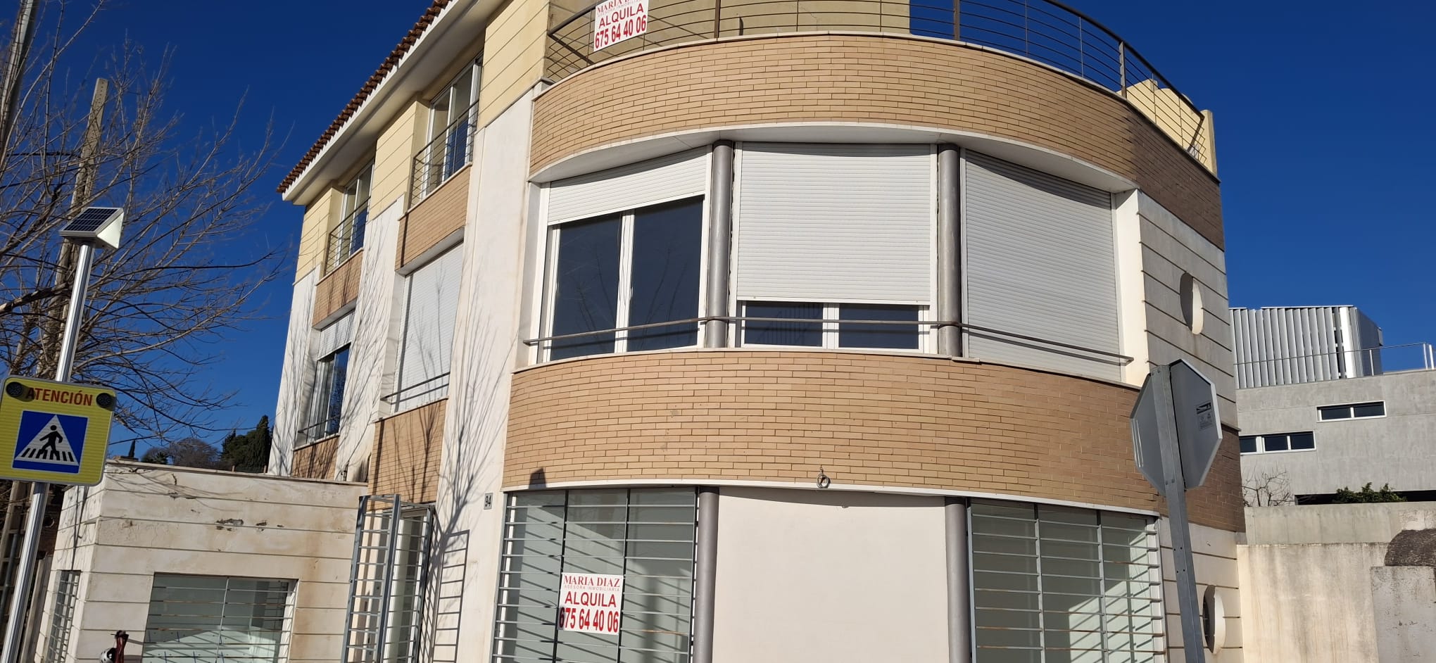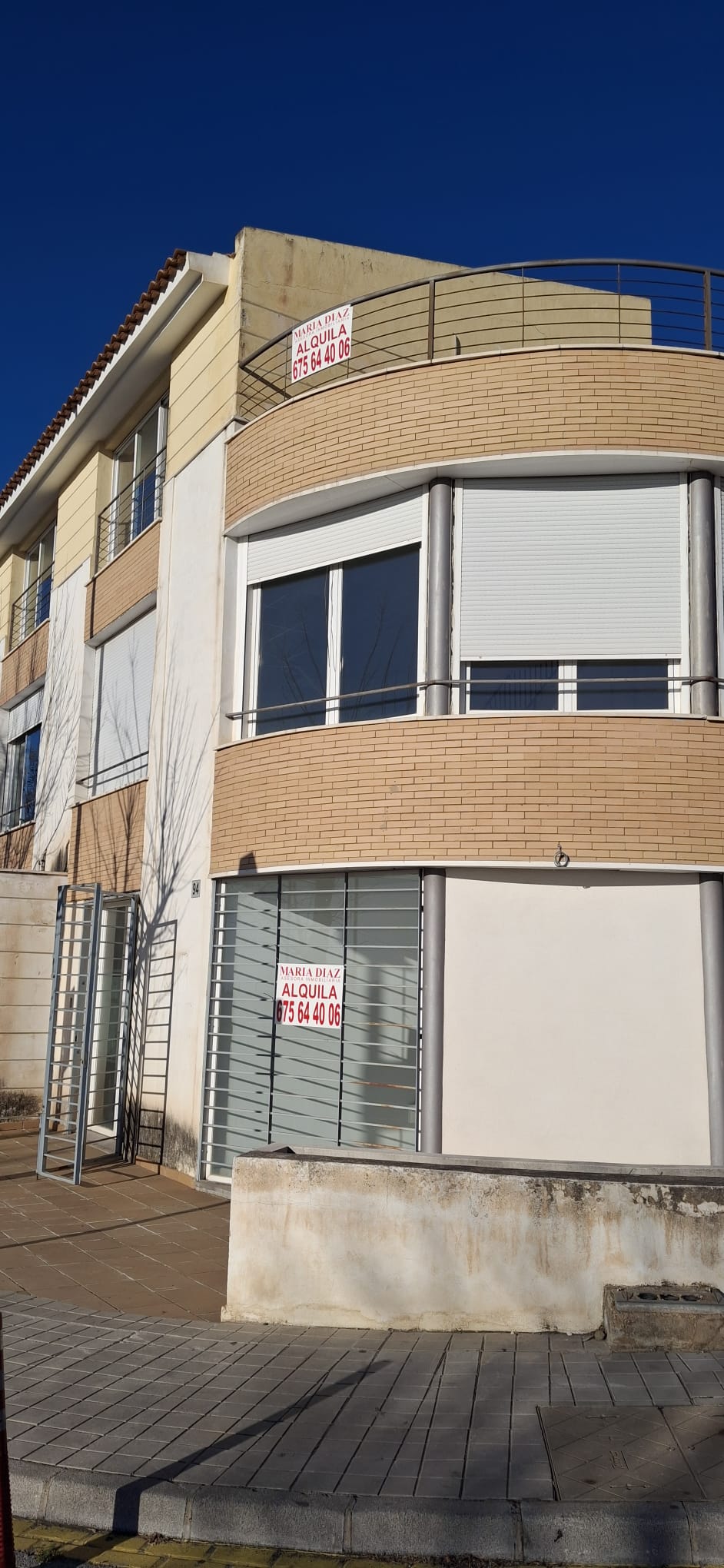 Se alquila edificio comercial de 340 m² construidos distribuidos en 4 plantas, situado en esquina y con gran visibilidad, en una zona de paso junto a gasolineras, cafeterías y otros servicios, lo que lo convierte en una ubicación estratégica para cualquier actividad. El inmueble cuenta con grandes ventanales que aportan mucha luz natural y agradables vistas despejadas, creando espacios de trabajo luminosos y agradables. Existe la posibilidad de alquilar el edificio dividido en dos espacios independientes: Zona inferior: local comercial con acceso directo desde la calle y sótano con zona de almacenaje, ideal para comercio, showroom o negocio con atención al público. Zona superior: plantas destinadas a oficinas o despachos, con terraza y espacios muy luminosos gracias a sus amplios ventanales. Características principales: 340 m² construidos Edificio de 4 plantas Ascensor Terraza Baño Cocina office Sótano con almacén Grandes ventanales con luz natural Ubicación en esquina con alta visibilidad Por su distribución y características es perfecto para clínicas médicas o estéticas, despachos profesionales, academias, coworking, oficinas o cualquier tipo de negocio. 💰 Precio de alquiler: 1.200 € al mes cada parte del local (2 partes) Una excelente oportunidad para establecer tu negocio en un edificio versátil con múltiples posibilidades.