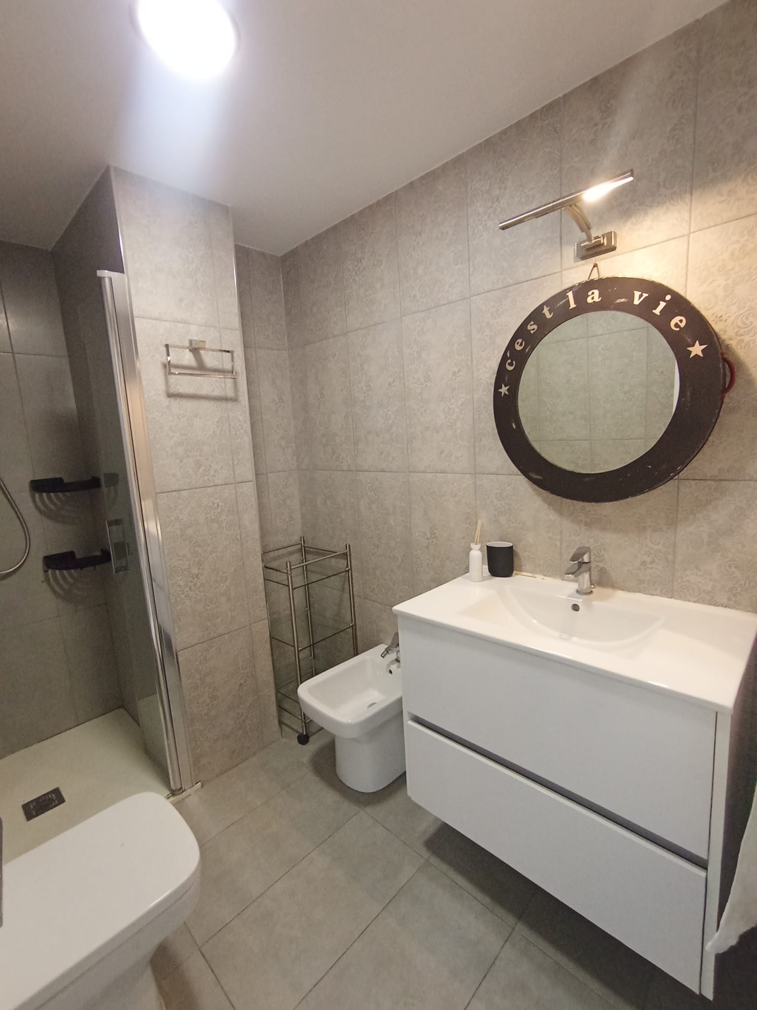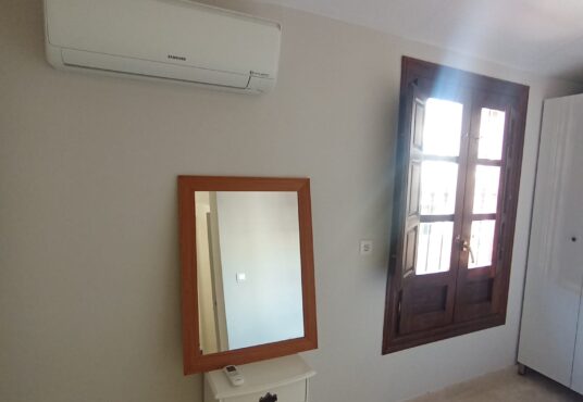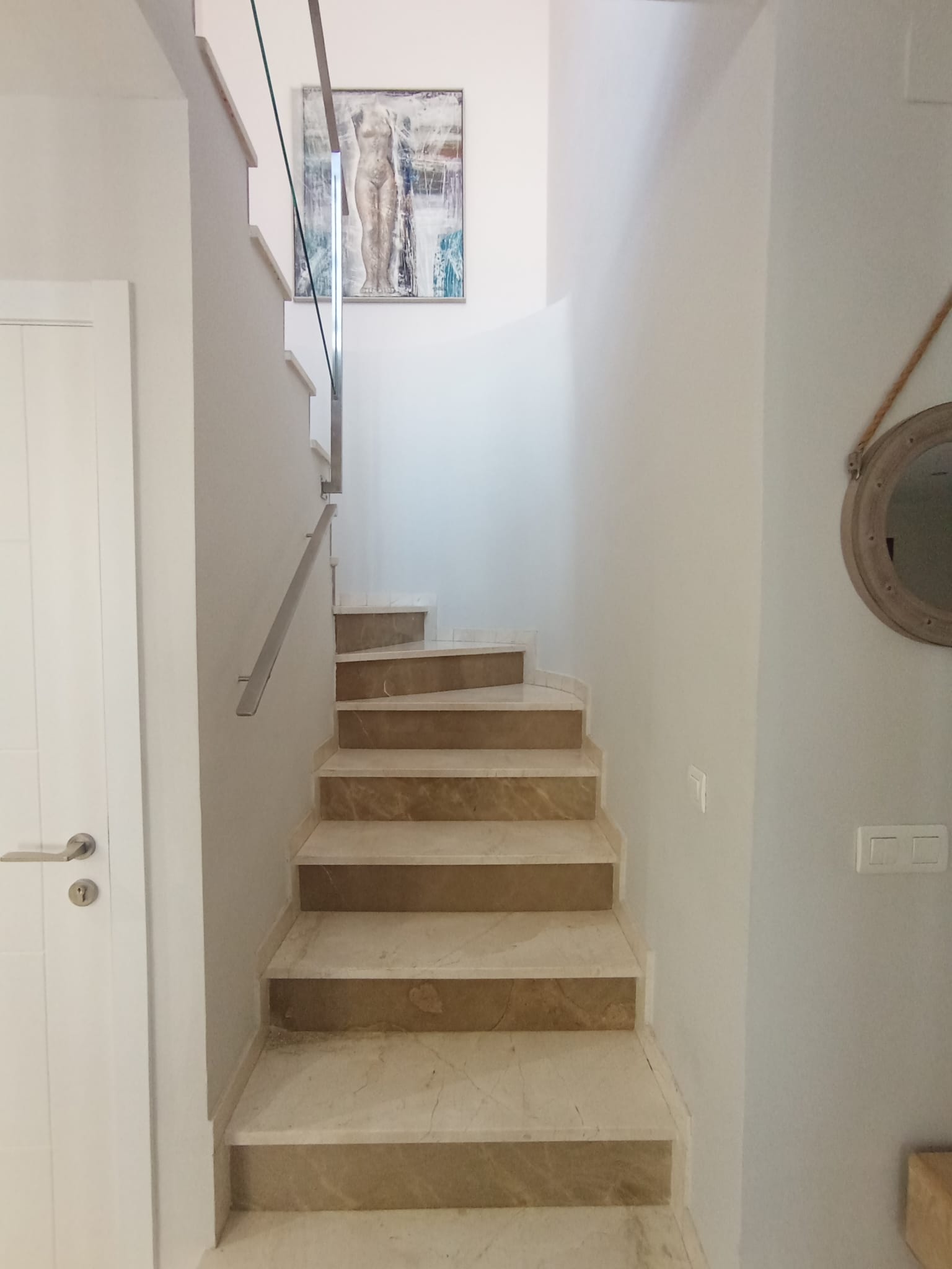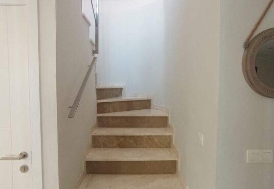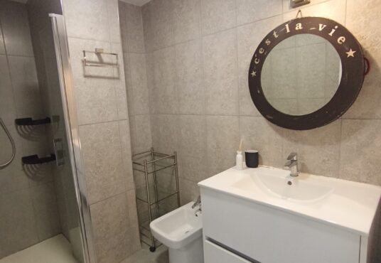 La cocina abierta conecta perfectamente con el salón, creando un ambiente ideal para compartir momentos inolvidables. En la entrada, un baño completo añade funcionalidad al diseño. La planta superior alberga tres acogedores dormitorios, dos de ellos equipados con camas de matrimonio y armarios empotrados, además de un segundo baño completo.